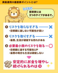 安定的にお金を増やし続けられる投資家は、まさに③のタイプです。