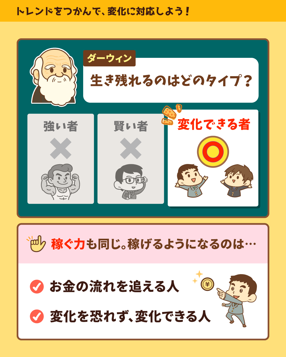 時代の変化に敏感になり、稼ぐ力をアップさせていきましょう。