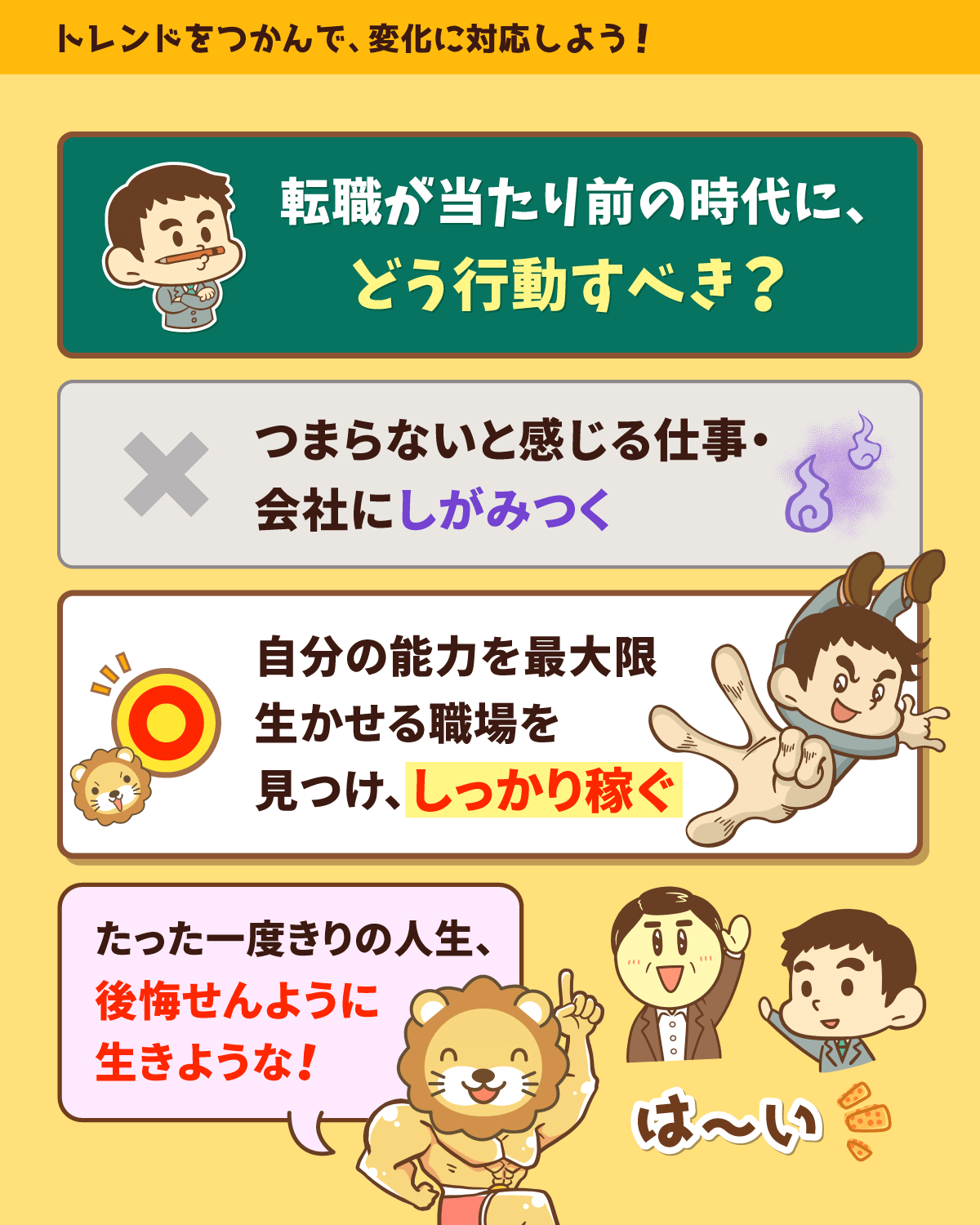 変化の波に乗り、自分の能力を最大限発揮できる場所で働くことをおすすめします。