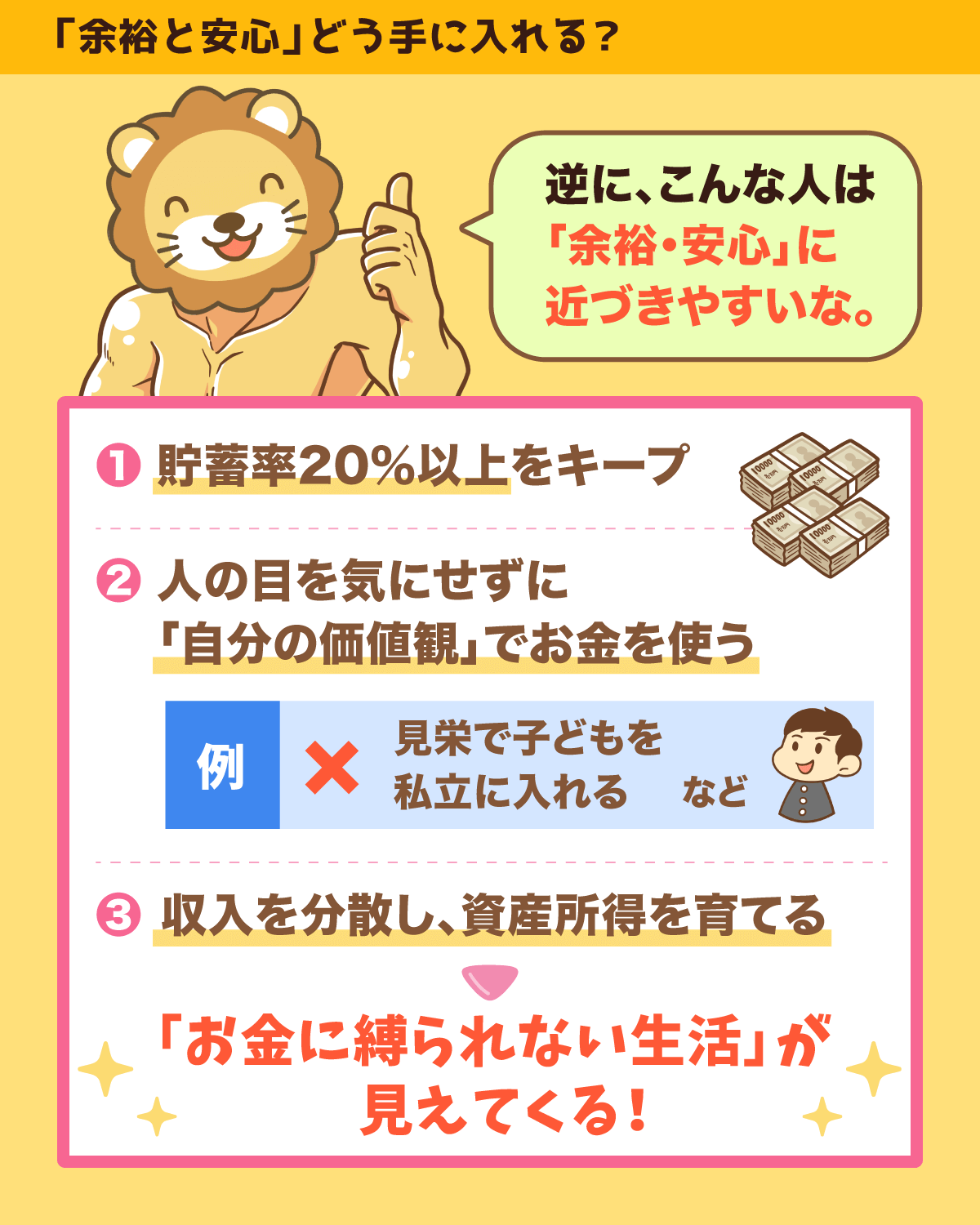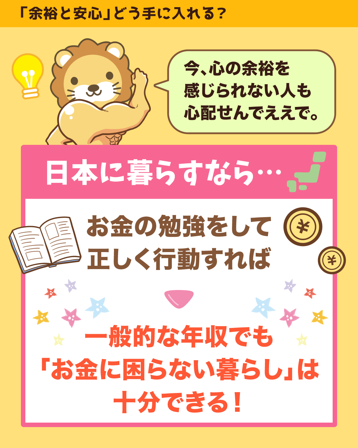 余裕・安心を得るには「お金との付き合い方」が重要です。