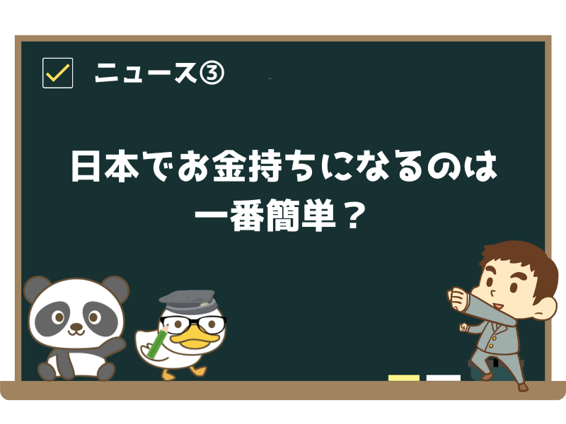 ニュース3:日本でお金持ちになるのは一番簡単?