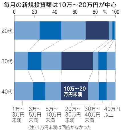 日経新聞が読者約1,900人にアンケートを取ったところ、毎月の新規投資額は10万円台が中心だったというニュースです。