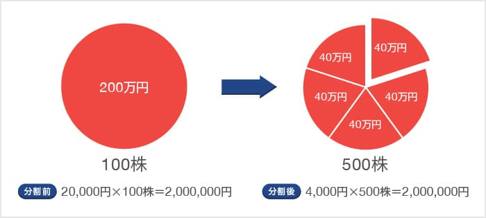 例えば100株を500株に分割すれば、最低投資額は40万円に引き下がります。